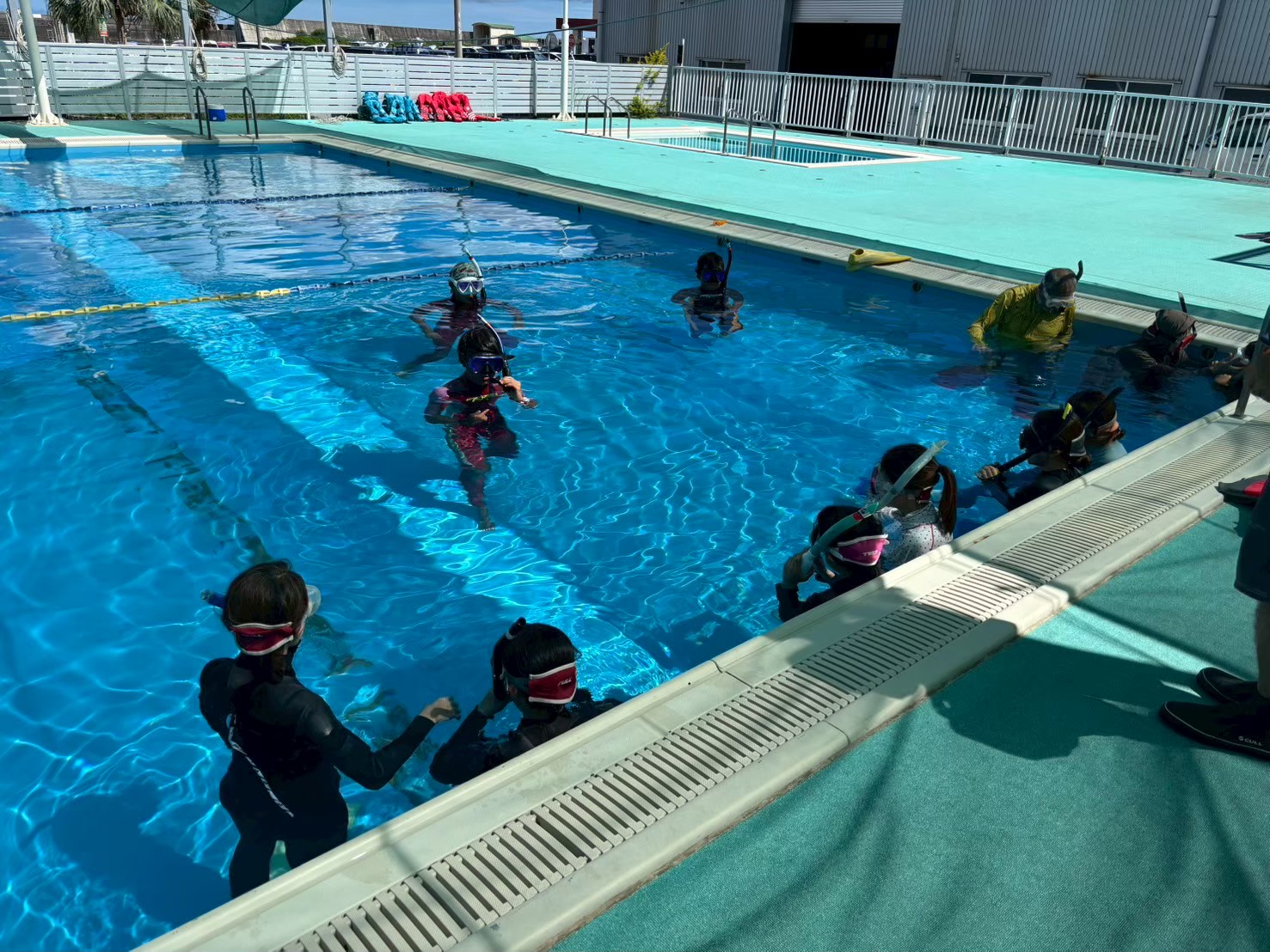 施設内プールにて受講し、大山漁港より出港してすぐの